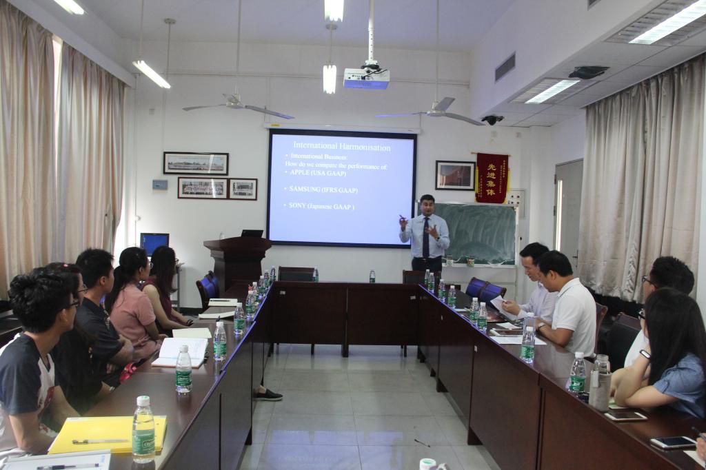 随后,Kishor Lodhia教授提出应该建立一套统一的国际标准会计准则,并向我们展示了统一的会计准则给我们带来的各种益处。他指出,由于一些国家的反对,国际会计准则在应用方面进展缓慢。在谈到中国时,他指出国际标准会计准则在中国的应用可以为我们带来巨大的好处,但同时也会使我们面临许多风险。由于文化等原因,国际会计准则在中国的应用也注定是一个长期的过程。