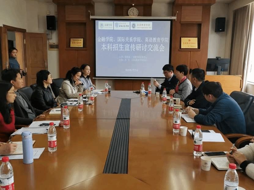为进一步推进本科招生宣传工作,27日上午,我院联合国际关系学院、英语教育学院在大学城校区院系楼245会议室举办“本科招生宣传工作研讨交流会”。金融学院党委书记徐昶斌,国际关系学院党委书记袁薇佳,英语教育学院院长吴岩、党委书记骆银花以及三院党政领导班子成员、系(部、室)主任和有关人员共30余人参加活动,活动由吴岩主持。