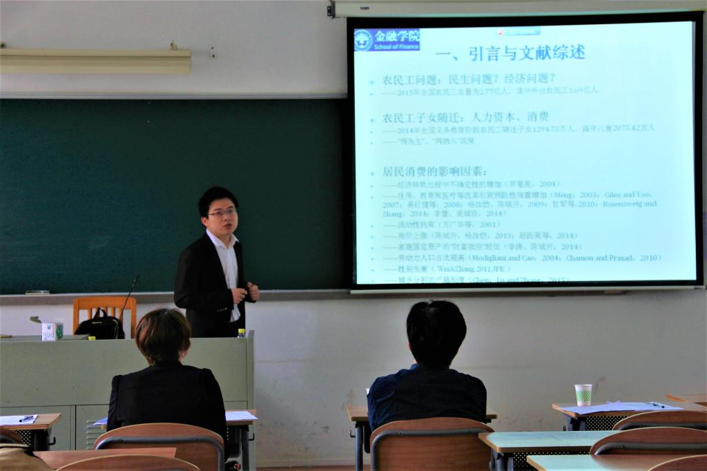 本网讯 3月24日上午,中国人民大学经济学院丁浩博士做客广外金融双周论坛第二十九讲,在南校区教学楼B座406室向我院师生分享了主题为“子女随迁政策对农民工家庭消费的影响机制研究”的研究成果。我院院长易行健教授、金融系代系主任孙玲副教授,云山青年学者杨菁菁、毛尚熠及研究生代表等出席讲座。