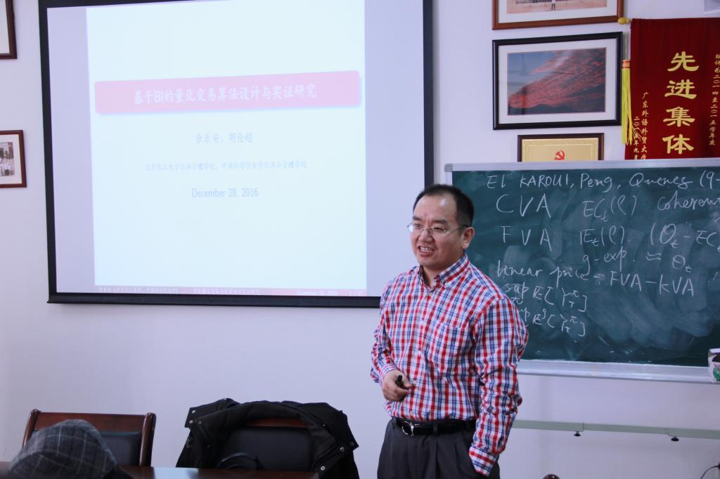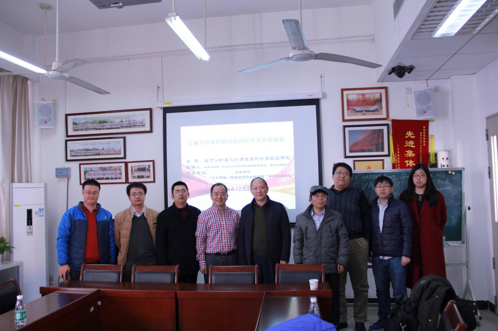 本网讯 12月28日下午,我院在南校区教学楼B304室举办金融学院和科研创新团队学术讲座,余乐安教授做了“基于BI的量化交易算法设计与实证研究”的主题报告。金融学院党委书记马庆华教授、副院长姚海祥教授、院长助理张浩以及教师代表出席讲座。讲座由副院长姚海祥教授主持。