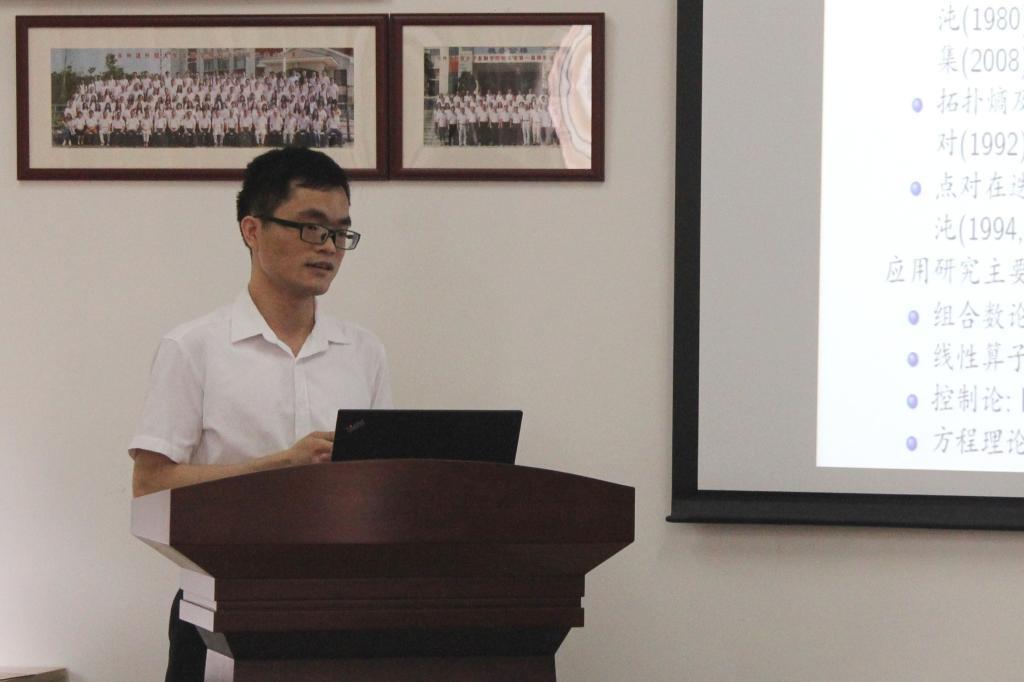 邓勋环博士分享了关于“时标动态方程的振动性:定性理论”的研究成果。他先对时标理论和时标动态方程进行了简单讲解,再进一步分析“时标动态方程的振动性”。他通过应用广义Riccati变换 $w(s)$ ,证明了函数 $H(\sigma(t),s)w(s)$ 关于变量s单调非增,建立了二阶非线性时标动态方程新的Philos型振动准则,最后,他所得的结果从本质上推广和改进了关于半线性时标动态方程的Philos型振动准则和Kamenev型振动准则。
