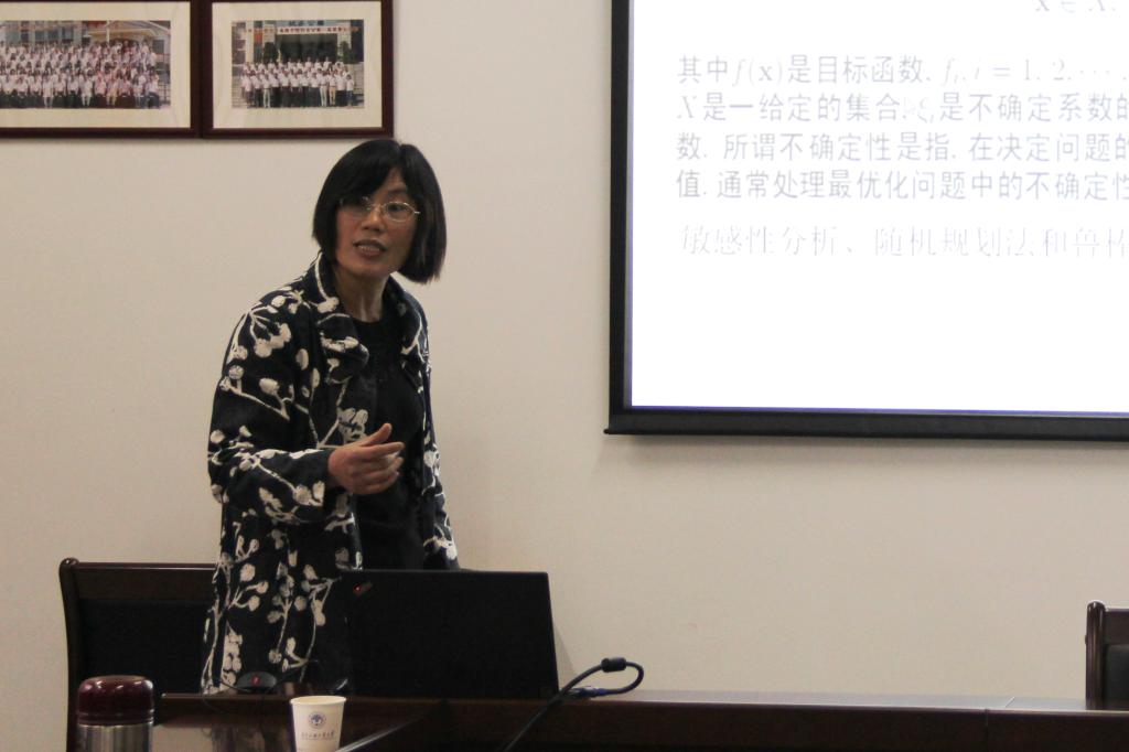 罗桂美博士分享了“鲁棒优化在双人博弈中的应用”的研究成果。她从鲁棒优化介绍、双人博弈分析、双人博弈中对手策略不确定下的鲁棒优化分析、双人博弈中自身支付矩阵不确定下的鲁棒优化分析四个方面分别展开论述,重点介绍了纳什均衡、混合政策中的纳什均衡、对手策略属于盒状不确定集、混合策略属于对称且椭球不确定集、对手策略属于非对称且范数不确定集、自身支付矩阵盒状不确定、自身支付矩阵对称且范数不确定、自身支付矩阵非对称且范数不确定等方面内容。