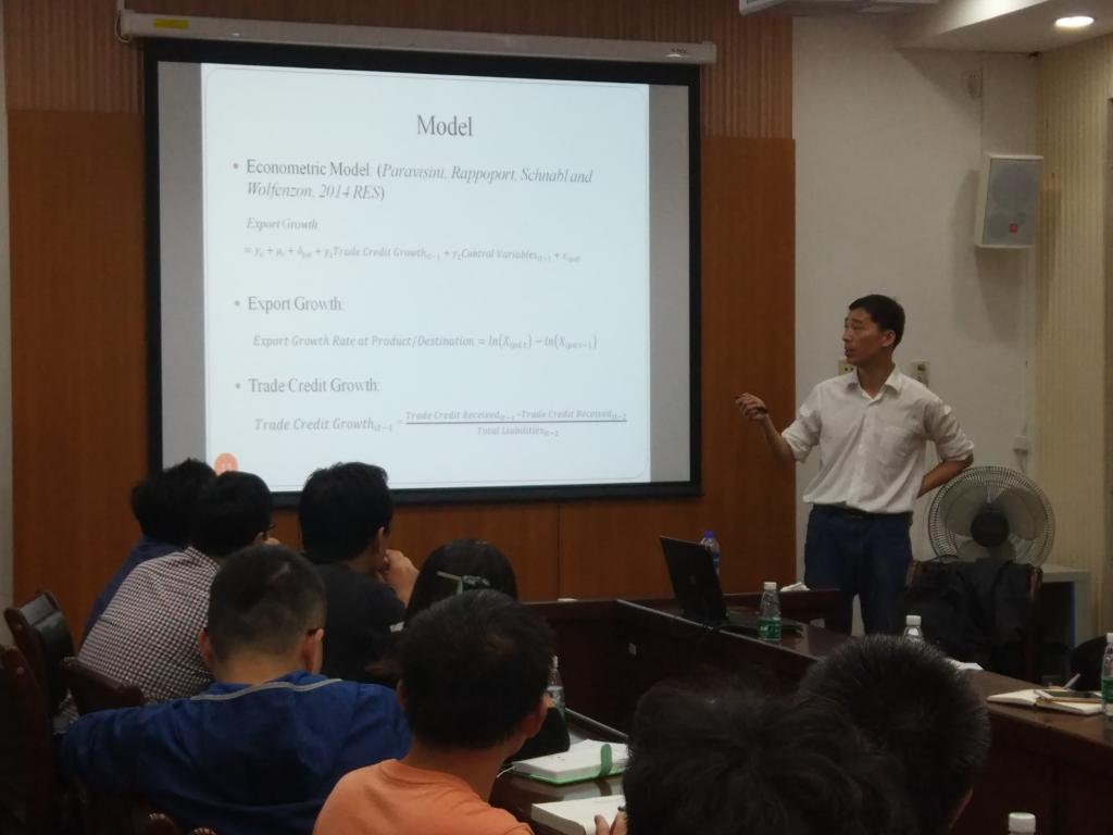 本网讯2018年10月12日(周五)晚上7点,北京大学经济学院杨汝岱教授,受邀做客广外金融论坛第二十一讲,在我校南校区院系办公楼401(金融学院会议室)做了主题为“Trade Credit and Export: Evidence from China”的学术讲座。我院院长易行健教授,副院长展凯教授、副院长张浩副教授、周利博士等教师代表及我院研究生出席讲座。本次讲座由易行健院长主持。