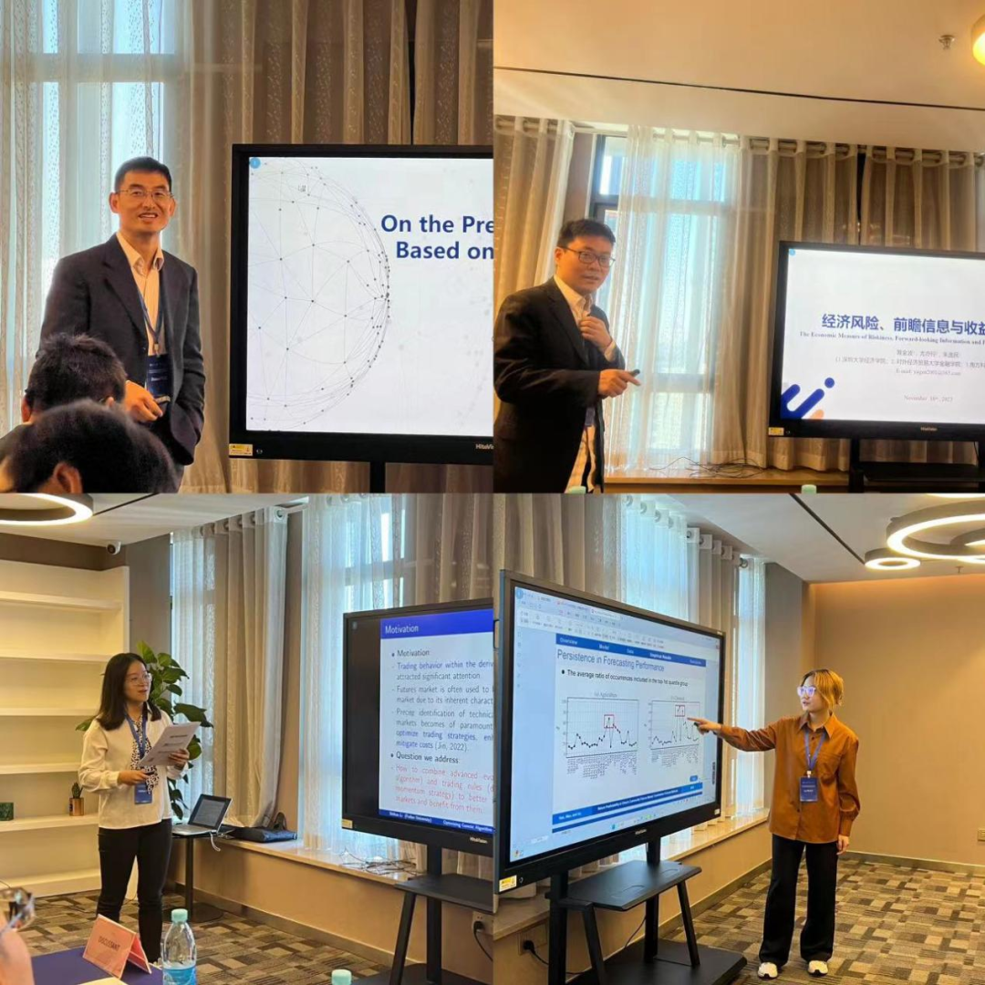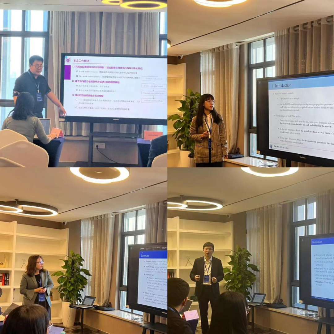 分论坛6主要围绕Portfolio and Network Analysis(组合和网络分析)进行。南京大学的李昊骅、中央财经大学的曹红、中央财经大学的徐雅华和浙江大学的许奇以Building Defensive Portfolio on Stock Networks;The Role of Financialization on the Futures Markets: Evidence from Time and Space Domains;Clustering Effect in Higher-order Moments Across Various Timescales in the Cryptocurrency Market和Risk, Ambiguity, and Expected Returns: Some International Evidence为题进行论文汇报及互评。