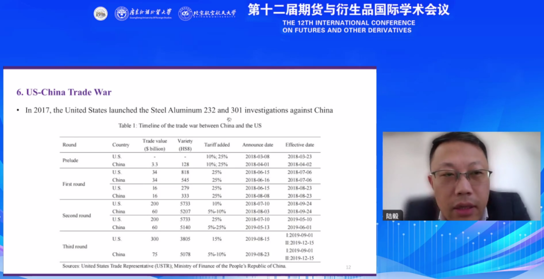 陆毅通过线上方式进行主旨演讲,主要讨论中美贸易战的短期和长期影响。他利用2017年1月至2019年5月中国海关月度数据,以2018年中美贸易战为研究对象,探讨出口对贸易保护的反应。研究结果显示,具有比较优势、出口增长率高、出口价值大、替代弹性高的产业对贸易保护的反应更大。