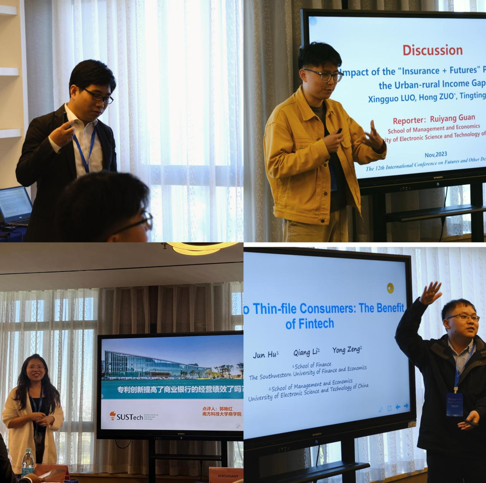 分论坛2的主题为Financial Policy and Banking(金融政策与银行业),浙江大学的骆兴国、电子科技大学的管瑞阳、南方科技大学的郭艳红和西南财经大学的胡俊分别以The Impact of the "Insurance + Futures" Pilot Policy on the Urban-rural Income Gap;Does Patent Innovation Improve the Operational Performance of Commercial Banks;Why Do Chinese Commercial Banks Issue Write-down Bonds和Lending to Thin-file Consumers: The Benefit of Fintech为题进行汇报及互评。
