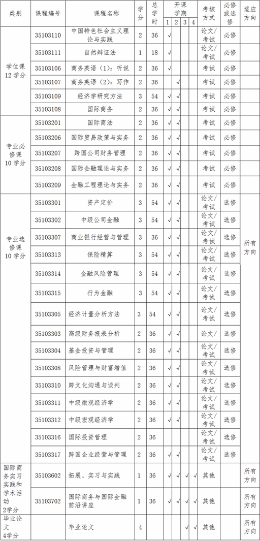 国际商务硕士(金融方向)——培养方案课程信息