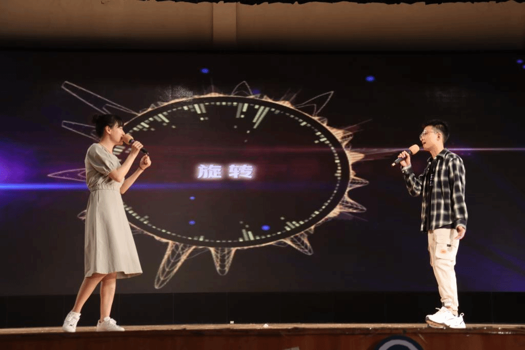 今晚老师也给我们带来精彩的表演,一首《传奇》祝福19级的学子顺利毕业,对16级同学回到母校表示欢迎。接下来19级辅导员刘天阳带来歌曲《蓝莲花》,用歌声鼓励同学们勇敢追寻独属于自己的未来。在这之后,赵家康和许佳乐同学给我们带来一首《老派约会之珊瑚海》,优美的旋律和轻柔的歌声敲打着我们的心。