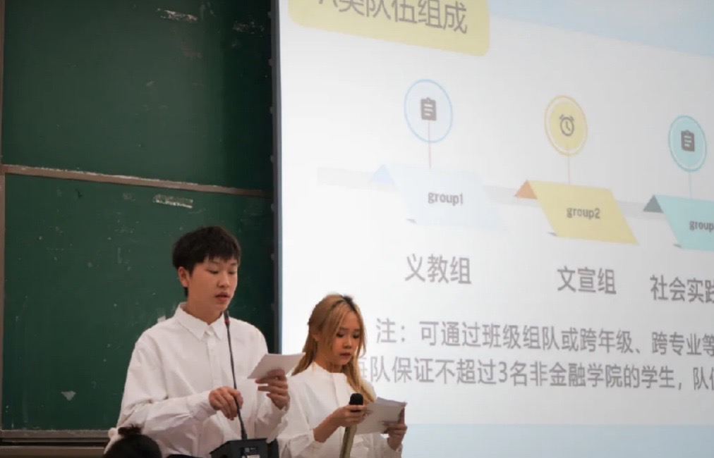 刘洁在动员发言中希望同学们能在本次宣讲会中真正了解活动的相关内容,并积极组队参与其中,主动将平时所学灵活运用到实践当中去,为乡村振兴作出金融学子的贡献。