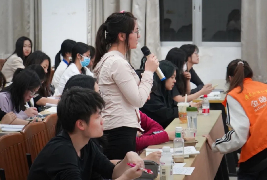 随后,新闻学院20级朱育锋上台为同学们分享经验。朱育锋详细介绍其领导的非遗传承项目“瑶篮”的主要内容、推进过程与所得成果,同时为同学们讲解项目答辩过程中应当注意的具体细节,着重强调把握答辩时间的重要性,并现场进行精彩的三分钟计时演示。通过朱育锋的分享与指导,同学们受益匪浅,对如何推进团队项目有了更深刻的认识。