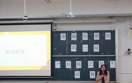 12月3日晚,金融学院第一届自强之星决赛在F514成功举办。当晚到场嘉宾有: 艺术学院党总支副书记、学生处副处长张莉老师、学生处勤工助学科陈哲老师、学生处助学科黄星老师,金融学院党委副书记赵观音老师。金融自强社指导老师林颖璐,本科生辅导员叶祥杰,龙志成,陈璟明担任本次决赛评委。