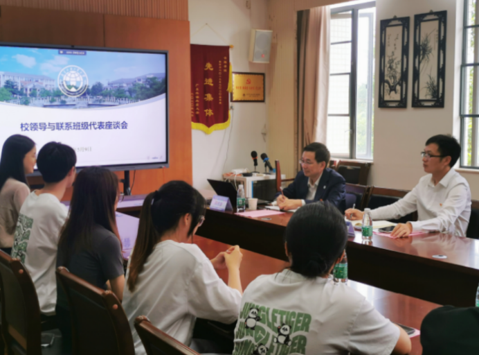 5月9日下午,校党委常委、副校长何传添在院系楼401金融学院会议室与对点联系班级金融学2101班学生代表进行座谈,共话成长发展。金融学院党委副书记张清达主持座谈会。会上,何传添励同学们分享在大学求学、生活过程中经历的大小挑战和成长感悟,认真记录同学们对学业发展、班级建设、党团活动等方面的感悟体会。他结合自身多年的工作经验和生活阅历,就同学们的疑问困惑进行了耐心细致的解答或探讨,并高度评价了同学们在座谈会中所展示出的热情与勇气,鼓励大家将现阶段的思考探索转化为未来发展规划动力。