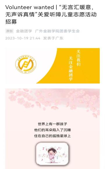 活动三:Volunteer wanted | “无言汇暖意,无声诉真情”关爱听障儿童志愿活动招募