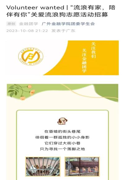 活动二:Volunteer wanted | “流浪有家,陪伴有你”关爱流浪狗志愿活动招募