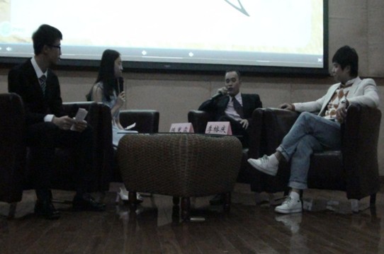(图二) 两位主持人(左)与两位优秀校友(右)进行访谈