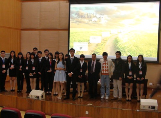 2014年12月5日19:00到21:00,由金融学院主办、金融学院学生校友工作会承办的“交享乐之总裁访谈篇”活动在广东外语外贸大学南校区图书馆报告厅顺利举行。本次活动有幸邀请到了两位优秀的广外校友——原广州对外贸易学院外经系国际贸易专业86级校友、现香港新讯时国际控股公司董事局主席、经贸校友会常务理事陈秉霖先生和原广州对外贸易学院外经系国际贸易专业93级校友、现桦岭贸易公司总经理、惠州校友会副会长李榕庆先生——回来与母校学子分享他们的大学经历、成功经验和人生感悟。出席本次活动的嘉宾还有金融学院学生校友工作会指导老师龙志成,陈秉霖先生的太太和儿子。
