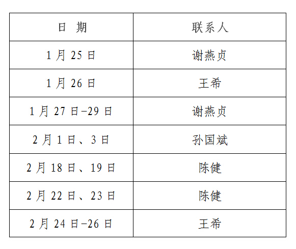 现将寒假期间办公室人员值班安排、学院印章用印方式、新学期学院工作布置等工作事项通知如下:
