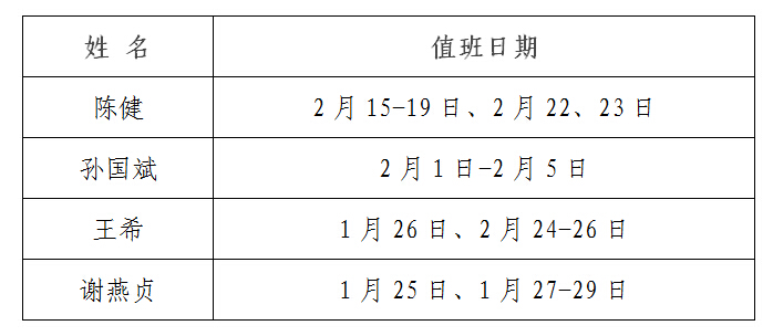 学院领导值班安排表: