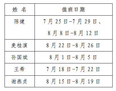 现将暑假期间办公室人员值班安排、学院印章用印方式、新学期学院工作布置等工作事项通知如下: