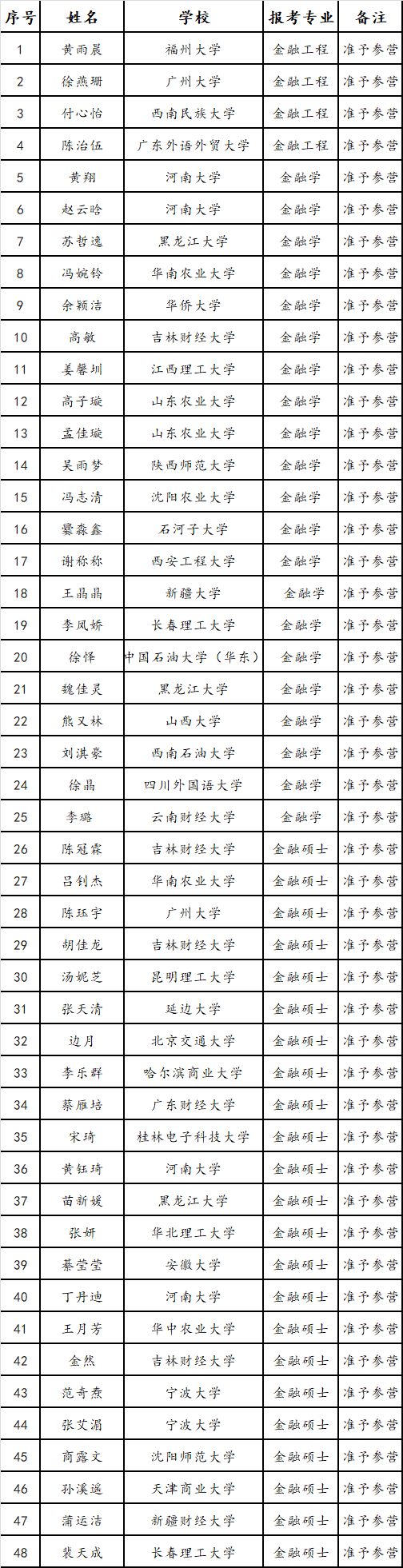 广东外语外贸大学金融学院2021年优秀大学生暑期夏令营参营名单