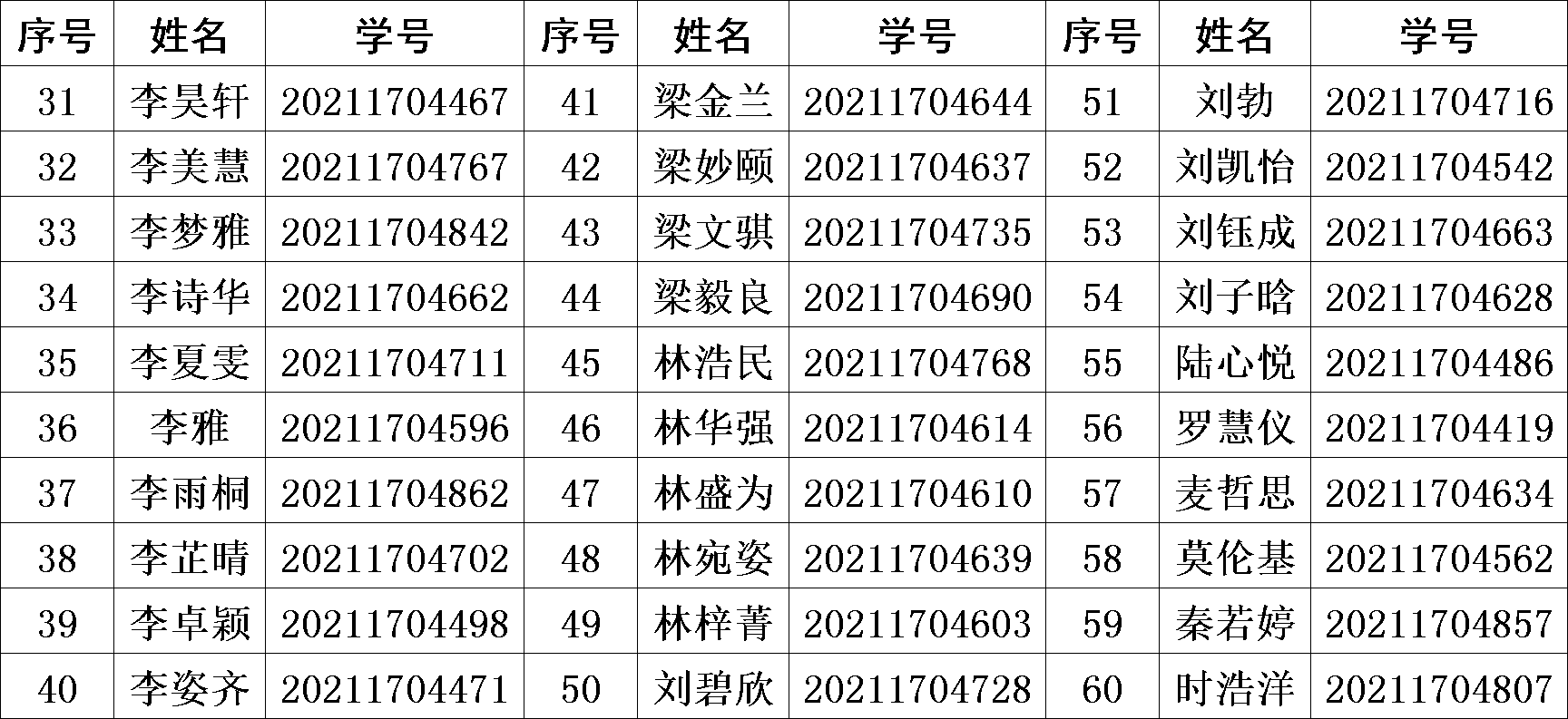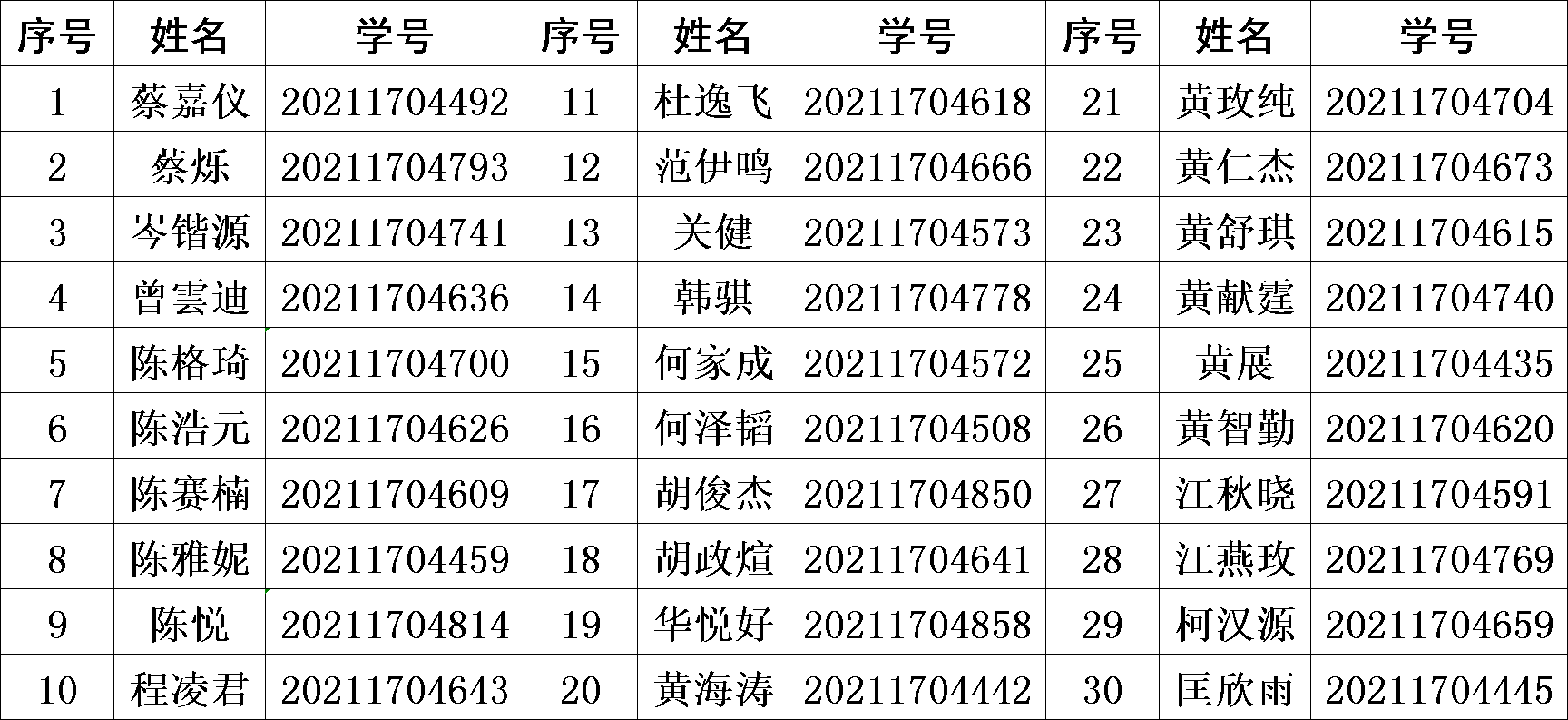 三、考生名单(排名不分先后):