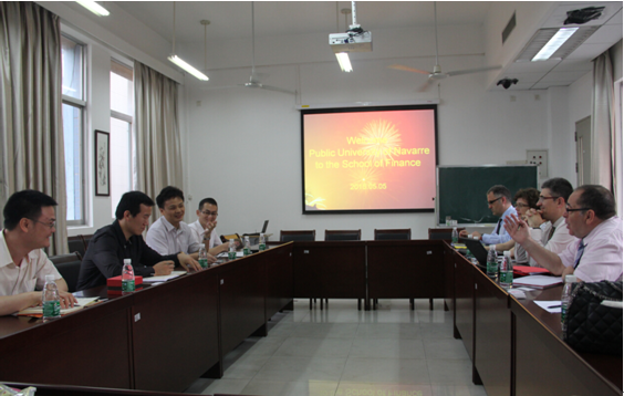 2015年5月5日上午,西班牙纳瓦拉公立大学负责国际交流与合作的来访团,在国际交流处易宗勇副处长和周鹏老师的陪同下来访我院。金融学院院长易行健教授、副院长展凯教授、学院办公室主任陈健、学院外事联络员龙志成出席了本次交流活动,纳瓦拉公立大学来访团成员包括商学院院长Arozena、国际关系部主任Ballaz、国际工商学院负责人Pilart、北京代表处负责人Hernandez、北京代表处竺北兰等。