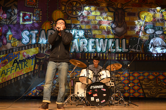 金融器乐队演奏的一曲《幻》听的观众心弦拨动,吉他、古筝、二胡、扬琴多种乐器相协调的演奏将《愤怒的小鸟》、《奇迹》和《赛马》三者糅合在一起,毫无违和感;绿洲音协则用他们的无伴奏纯人声合唱俘获现场观众的心,一曲小清新的《Born This Way》给大家带来了不一样的感觉。而“HJ&Circle”舞队同样令大家眼前一亮,伴着强烈的节奏和炫目的灯光,身着皮衣的他们帅气登场,男女共舞,激情四射,《没有明天》的霸气演绎令现场观众的血液也止不住沸腾。