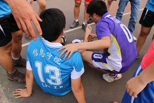 在与信息学院的比拼中,首局开始不久信息学院刘志鹏意外受伤,信息学院痛失主力。我方则在开始时一直领先,中途因多次失误而几乎被对方追平,后奋起拉大分差,当本局比赛进行到我方以24:14领先时,我方因失误导致连续丢分,比分被拉近至24:20,但最终我院以25:20取下该局胜利。第二局中我院队员奋力拼搏,最终在该局中以25:12的大比分优势胜出,在本场比赛中以2:0获胜。以下为两场比赛的精彩重现: