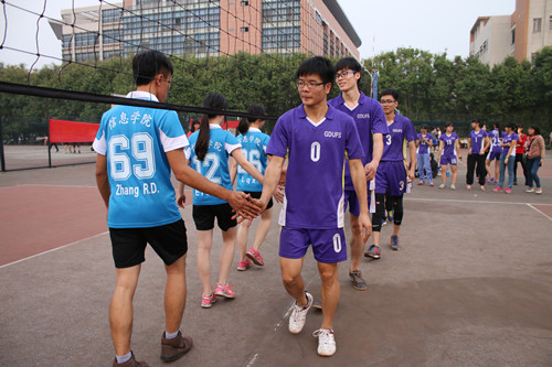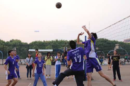 在与政管学院的角逐中,首局我院一马当先,终以25:10赢得该局胜利。第二局中途我院邹守遵以迅雷不及掩耳之势完成了一个扣球,让对方猝不及防,成为本局中的一大亮点。双方球员将球一次次来回传递,激烈的抗衡将本局比赛推向高潮,期间我方惜因出界失分,不过我院仍在此局中以25:13取胜,因而在本场比赛中取得2:0的好成绩。