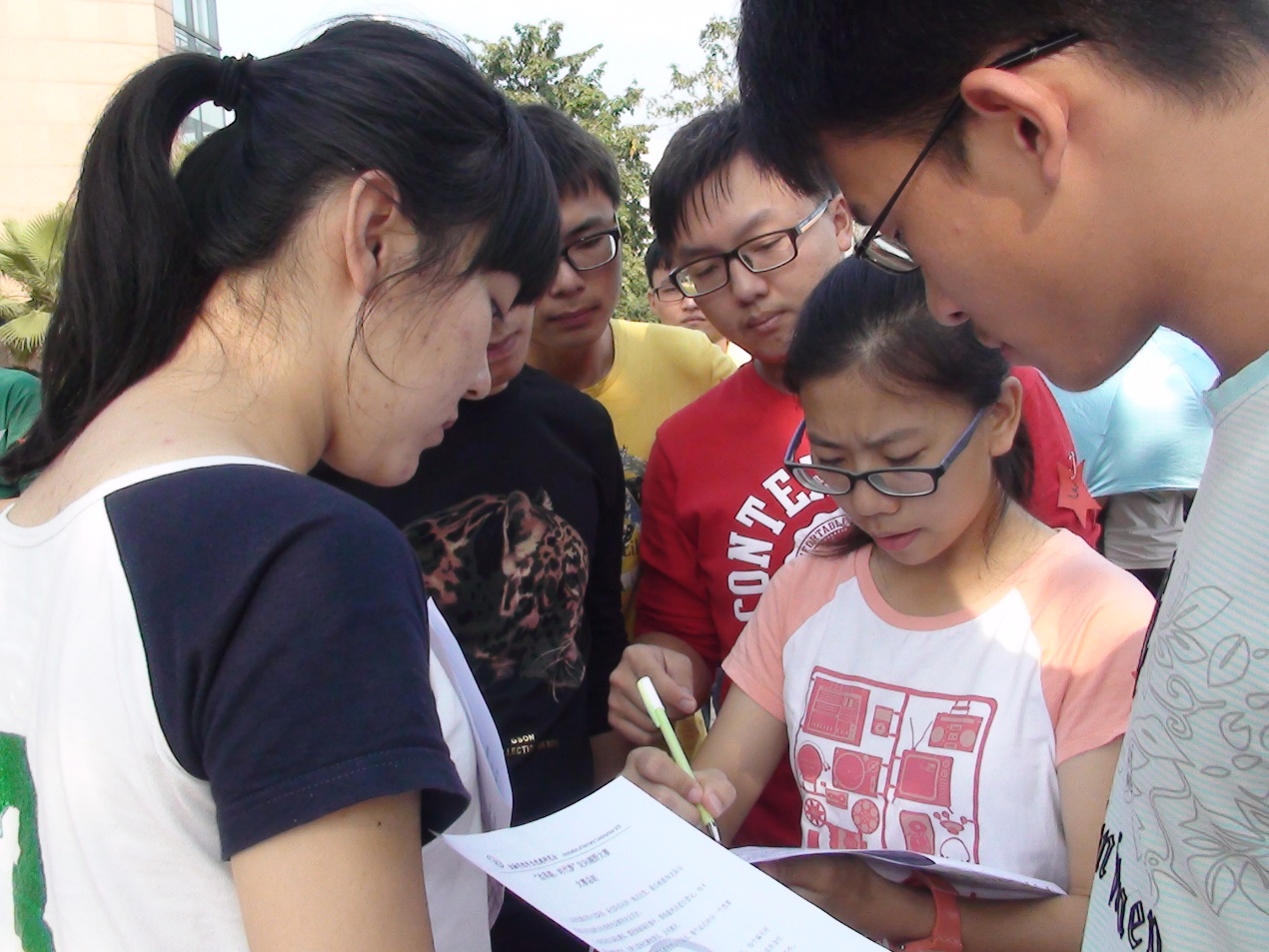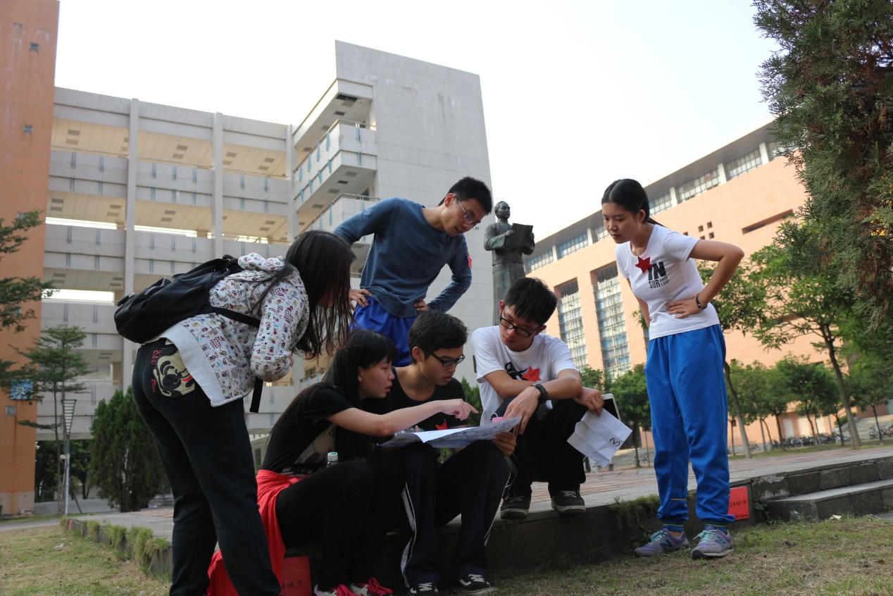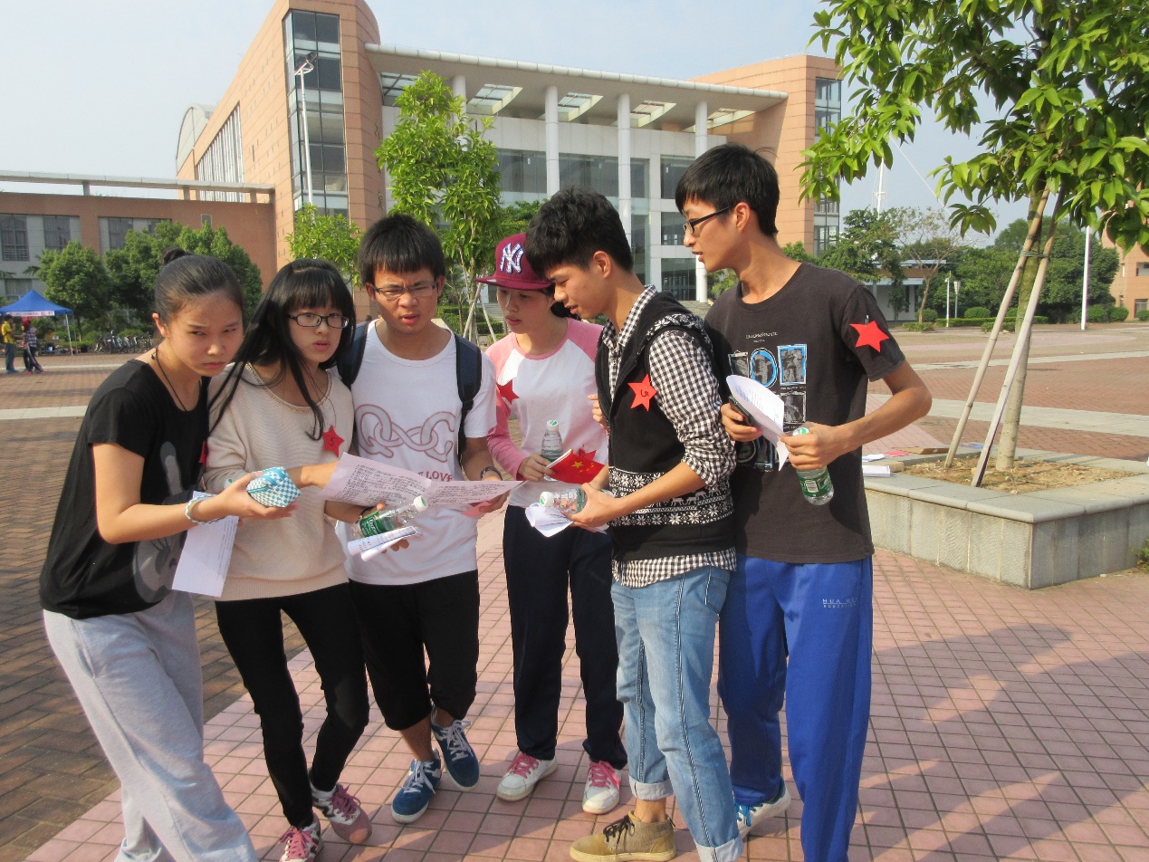 2014年11月22日15:00,金融学院第一届“追梦中国,铸魂时代”党支部活力大赛定向越野大赛于图书馆门前花池正式开始。金融学院八支学生党支部均派出6名代表参加了本次定向越野大赛。此次比赛中,每个参赛支部均需要寻找九个目标,每到达一个目标,需完成相应的一个游戏,获得任务卡,再根据任务卡提示寻找下一目标,直至抵达终点,将所领小红旗插入对应位置,比赛方结束。