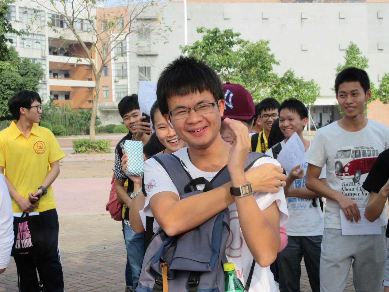 13级保险金工数学学生党支部成功抵达终点,难掩内心的喜悦,个个笑靥如花,做出加油很棒的点赞手势。