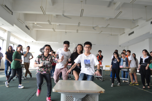 比赛在大家翘首以待下拉开帷幕。赛上,当遇到难度偏低的题目时,各组参赛代表成员蓄势待发,当主持人下达“抢答开始”的口令时,各组代表人员迅驰地一拥而上,以迅雷不及掩耳之势抢答题目,有时甚至由于参赛人员跑步的惯性以及推撞使得用于缓冲的桌子被推出一段相当远的距离,有的选手更是在抢答中连鞋子都掉了。当天进行得最激烈的莫过于第六场在D302进行的比赛,选手们实力相当,多次同时争抢同一问题。他们抢答时的各种身姿引得在场的人捧腹大笑,但大家心中也为他们的拼劲赞叹。可惜的是,有些题目由于抢答场面混乱而不得不作废。