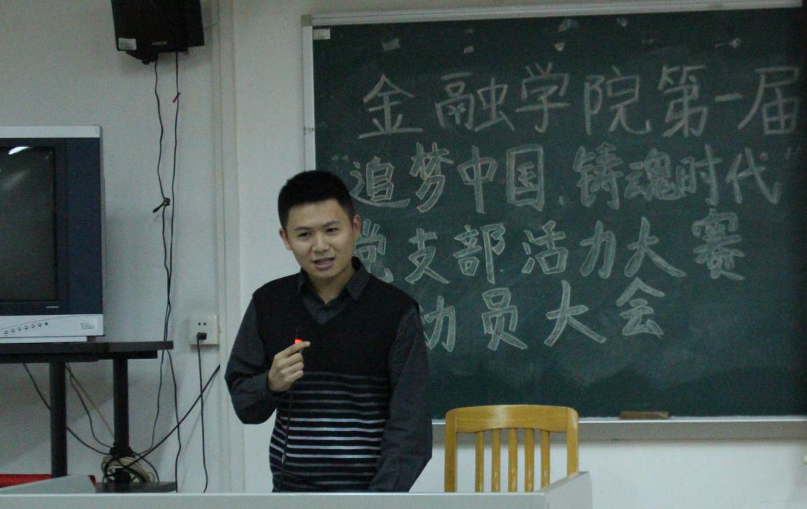 2014年11月17日20:30,金融学院第一届“追梦中国,铸魂时代”党支部活力大赛动员大会在教学楼F307正式召开。金融学院各级学生党支部的支书支委及各团支部代表参加了本次大会。