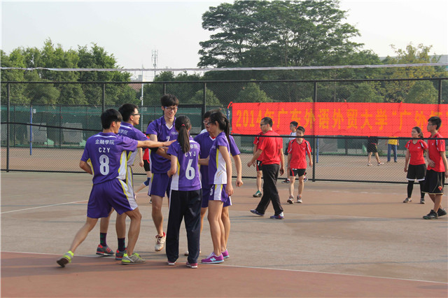 2014年11月20日14:30,广东外语外贸大学“广外杯”排球赛于南校区排球场正式拉开帷幕。金融学院分别和新闻传播学院、法学院进行了精彩的角逐,最终我院分别以2:0、2:1取胜。