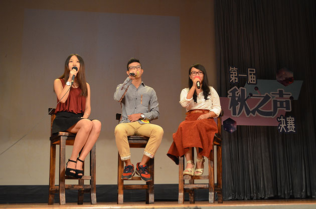 2014年10月10日19:00,广外大金融学院第一届秋之声校园歌唱比赛决赛在B8学术报告厅拉开帷幕。经过初赛紧张而激烈的角逐,决赛中8名选手和4个组合为我们奉献了一场视听盛宴。决赛分为选手自选自唱和清唱大PK两个竞赛环节。两轮精彩的比拼过后,王垚获得金融学院首届秋之声冠军,Top Soil摘得最佳组合奖的桂冠。