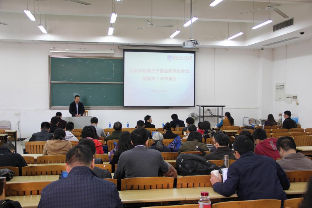 本网讯 12月17日下午,金融学院新任干部述职评议会议暨期末工作布置会在教学楼C507召开,会上新任干部分别进行述职,并对期末工作进行说明和布置。我校党校办公室主任王迪、金融学院院长易行健、副院长展凯、副院长姚海祥等出席会议。会议由赵观音主持。