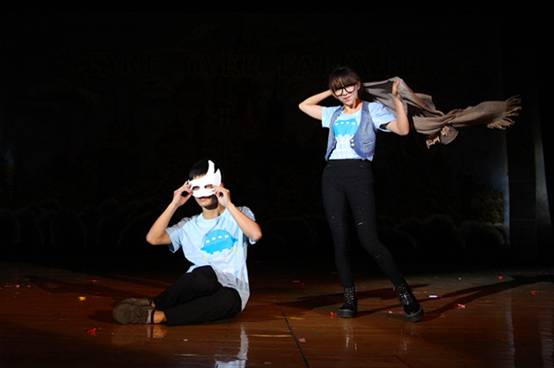 如果给你一个机会,你是否原因重返旧时光班长与学霸灵魂互换,时光重回英戏决赛,会擦出什么火花呢?保险1302的话剧《魔仙保的故事》为我们讲述了这一段神奇经历。从在校道上,班长与学霸为劝说同学东奔西走,到站在领奖台上,班长高举英戏冠军奖杯与全班同学一同合影,这一幕幕都利用投影仪投影在精心准备的幕布上,给观众们带来不一样的视觉盛宴。