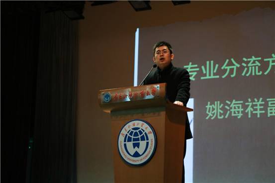 由于学院尚未出台专业分流的具体细则,姚海祥副院长着重介绍了专业分流依据,指出学院将参考大一第一学期学习成绩和高考成绩实现分流。同时,他就同学们关心的新疆生成绩换算以及高等数学与微积分成绩换算问题也做出相关说明。在简单解读了金融学院专业分流初步方案的指导思想、培养方案、分流范围、分流对象和分流程序等方面的情况之后,他表示:学院会按照社会需求与学科专业发展相结合,择优分流、尊重个性发展相结合与公平公开公正的三个原则,合理调整专业设置,动态调控专业分流人数,进一步完善具体培养方案,出台最终具体细则。