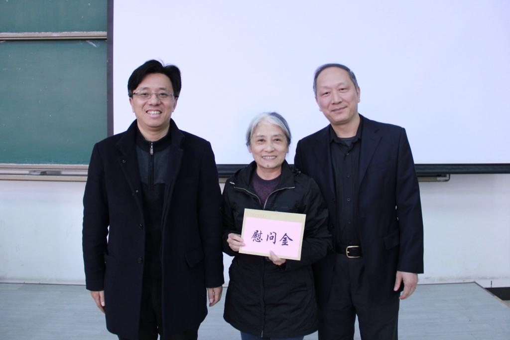 最后,马庆华充分肯定和感谢了谢虹老师和历海卫老师两位退休老师对我院所做出的贡献,并与易行健一起为退休教师代表厉海卫老师颁发慰问金。