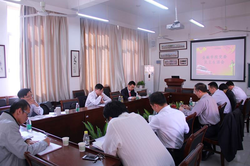 2017年1月3日下午,金融学院党委于学院会议室召开“2016年度民主生活会”。本次民主生活会,以学习贯彻党的十八届六中全会精神为主题,围绕“两学一做”学习教育要求,重点对照《关于新形势下党内政治生活的若干准则》和《中国共产党党内监督条例》,结合思想和工作实际,进行党性分析,开展批评和自我批评,不断增强领导班子和领导干部发现和解决自身问题的能力。