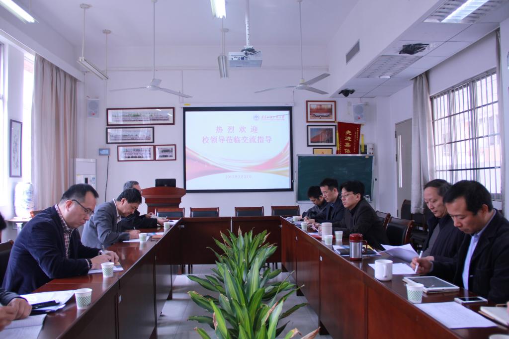 本网讯 2月27日上午,我校党委书记隋广军带领党委办公室、校长办公室主任植秀聪,保卫处处长何越晖,教务处副处长袁琦等领导前来我院检查新学期开学工作。我院院长易行健、党委书记马庆华、副院长展凯、副院长姚海祥、副书记赵观音、院长助理甘建芳等出席座谈会。