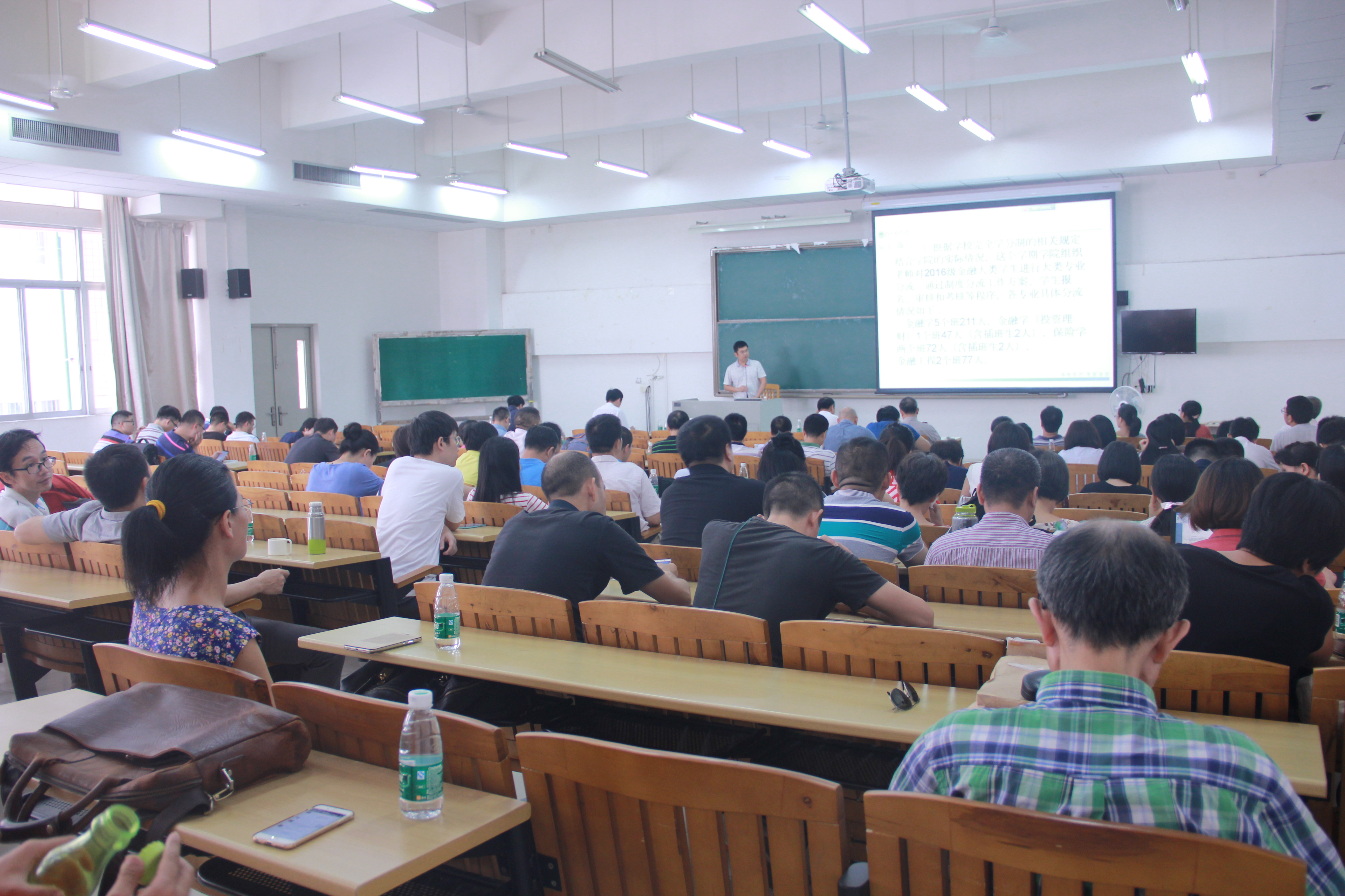 本网讯 9月2日下午,我院在南校区教学楼C308召开2017-2018学年度第一学期工作布置会暨上一学期工作总结会。我院院长易行健、党委书记马庆华、副院长展凯及姚海祥、党委副书记赵观音和全院教职工参加了会议。会议由展凯主持。