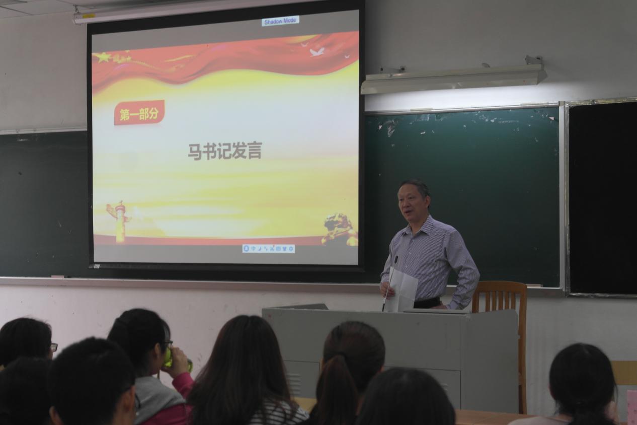 大会伊始,马庆华书记发表讲话。首先,马书记简述了现在党员发展工作与以前的不同之处,特别是入党人数的削减及入党条件变得更严格。然后,他明确了这一期参加入党积极分子培训班的学员的学习方向:学员不仅在上党课的时候认真听讲,更要自觉学习贯彻党的十九大及两会的内容和精神。接着,马书记提出学员们要在思想上重视这一期入党积极分子培训班,认真学习,全面提升对党的认识,提高政治素养。最后,马书记强调:学员们要在思想上入党,端正入党动机。马书记表示他对同学们寄予厚望,并预祝这一期入党积极分子培训班能取得圆满成功。