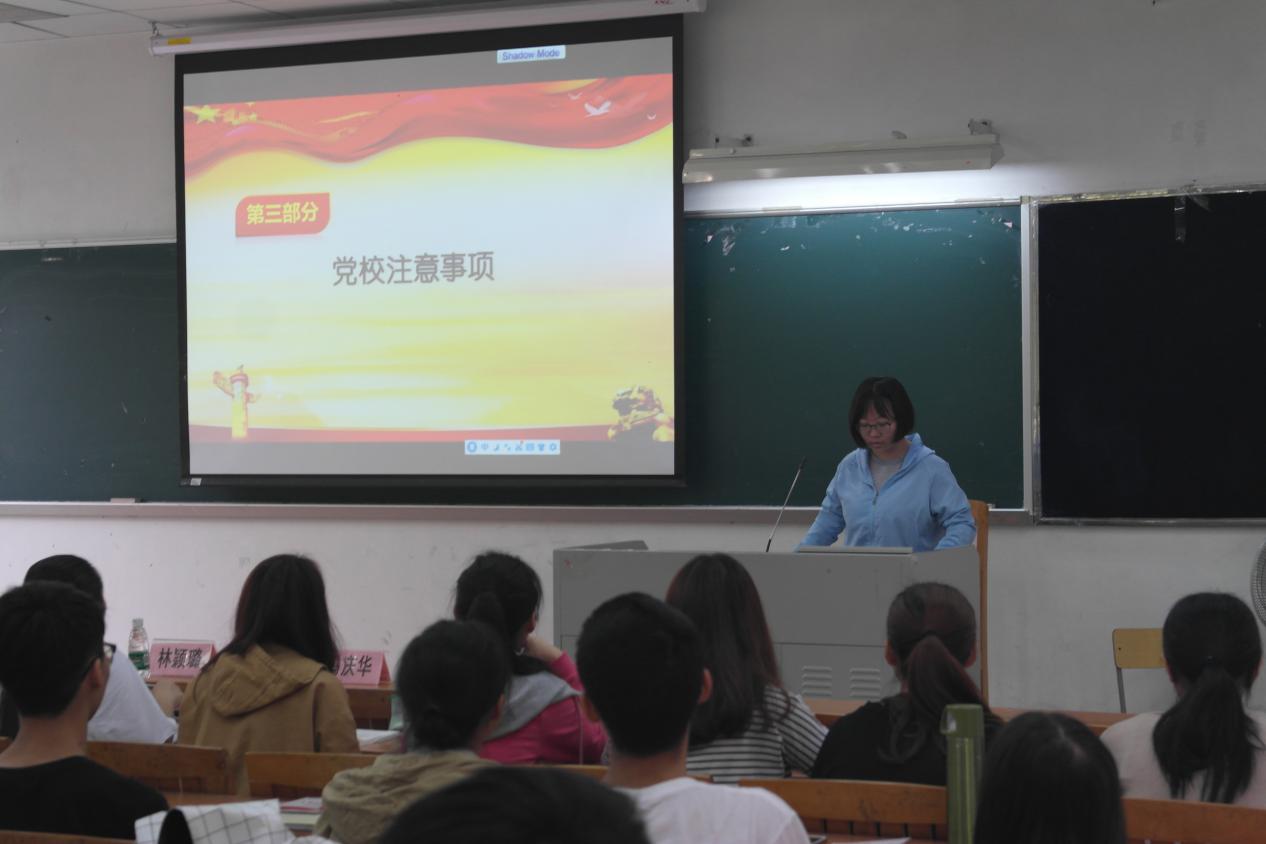 紧接着,林颖璐老师发言。林老师首先简述了入党的流程,详细讲解了入党积极分子转为发展对象的过程。然后,她特别强调了树立正确的入党动机的重要性,指出同学们在入党的过程中要坚持初心,不畏艰难,不惧繁琐。同时,她还指出同学们在加入党组织之后,要积极承担起责任,认真履行好应尽的义务。