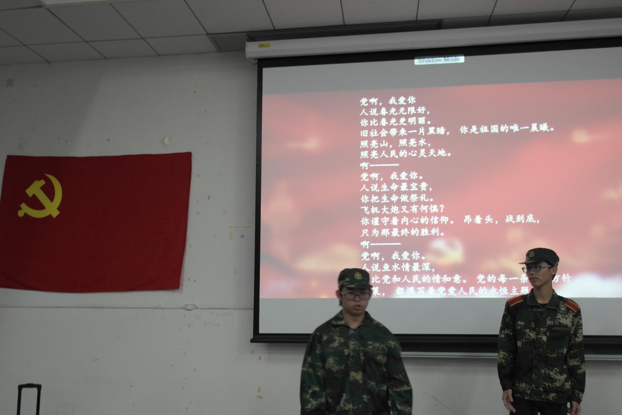 新征程队以视频的形式介绍了阮金良老党员的事迹,并且传达了老党员对当代青年的建议他们还通过话剧的方式讲述了金门炮战下两位运输兵的故事。他们是军事行动中的运输兵,在枪林弹雨下追随党的指引。即使时面临死亡,身为后勤的他们也时刻牢记使命。从他们的表演中,我们可以感受到战士们执行任务的坚定并且学习到他们无私奉献的精神品质。最后,队伍以朗诵《党啊,我爱你》来表达他们对党的赞颂。