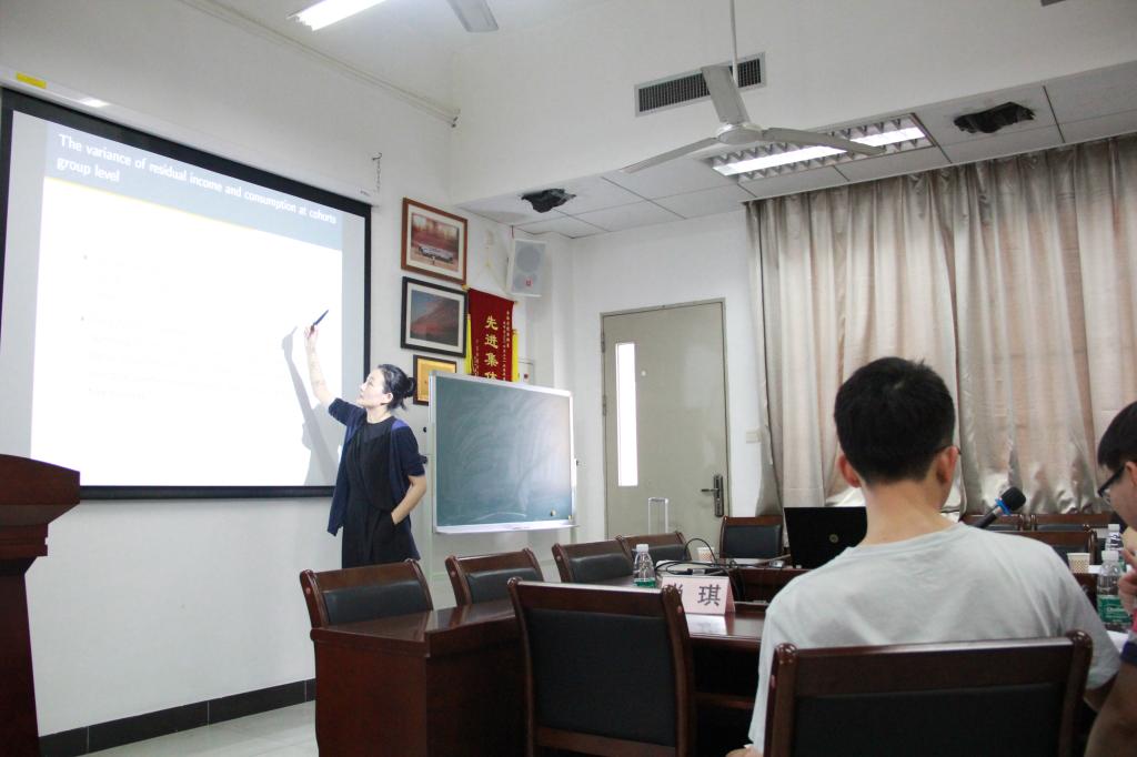 第二阶段的工作论文讨论由广东外语外贸大学金融学院副院长展凯教授主持。广东外语外贸大学金融学院副教授来特进行了题目为《Financial integration and consumption smoothing in China》的报告。