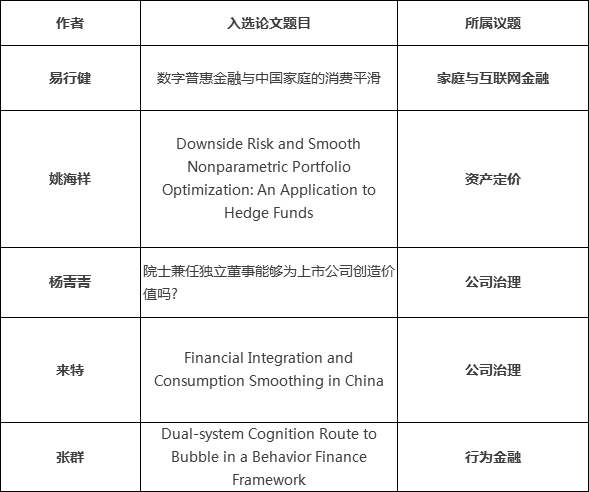自2004年起,中国金融学年会每年举行一次,由中国主要大学轮流承办,目前已成为中国最重要、学术水平最高的金融学会议之一。今年的金融学年会由暨南大学和中国金融学年会理事会联合主办,暨南大学经济学院和暨南大学金融研究所承办,《南方金融》编辑部协办,年会共有来自222所境内外高校和科研单位(包括60余所境外机构)的600多名金融学领域专家、学者及暨南大学近千名师生参加。年会论文征集得到国内外金融学者的积极响应,共收到中英文学术论文投稿600多篇。经过专家匿名评审,共有186篇论文入选,最终有157篇论文在年会分论坛进行宣讲。同时,经专家匿名投票,最终评选出6篇优秀获奖论文并于会议当天进行公开表彰。
