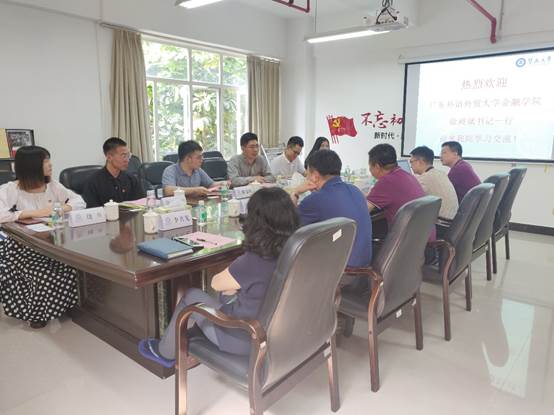 本网讯 为进一步加强新形势下思想政治教育工作,拓展完全学分制下学风建设的新思路,探索党建和团学工作的新举措,提升学工干部能力素质,4月23日下午,金融学院党委书记徐昶斌带领学院学工团队全体成员前往暨南大学经济学院调研学习。