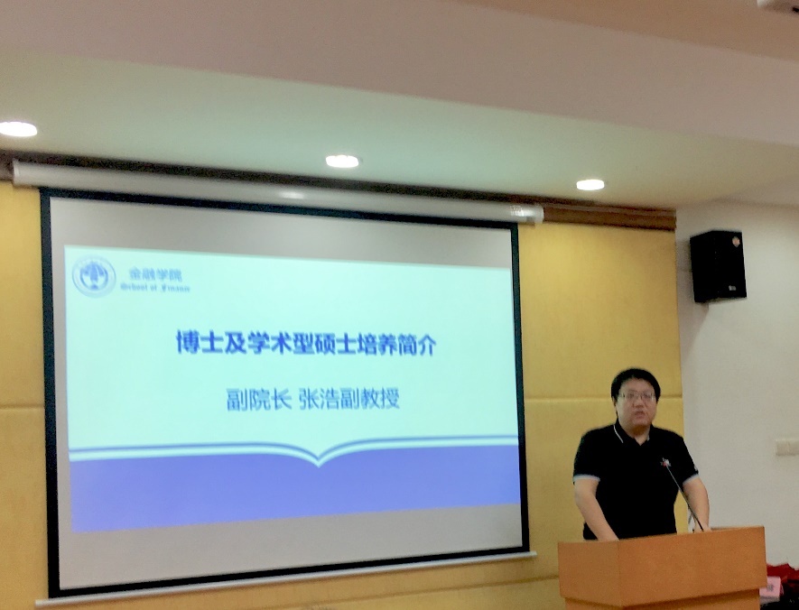 随后,张浩副教授和展凯教授以此分别为同学们介绍了博士及学术型硕士培养方案,金融学硕士点发展、硕博导师情况、课程设置和专业型硕士培养,金融专硕硕士点发展。