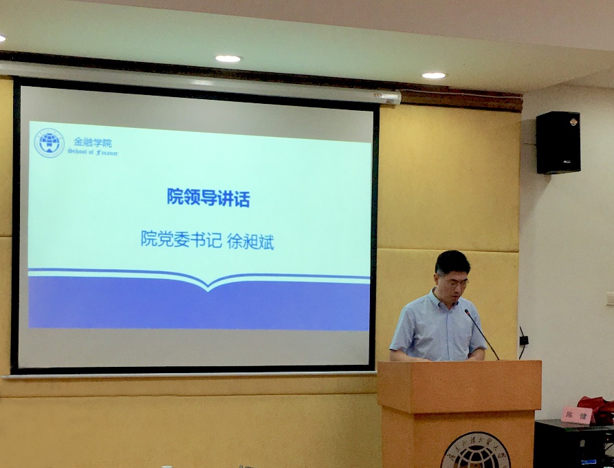 接着,院党委书记徐昶斌老师上台讲话。徐书记主要从学术生涯、职业发展以及人生规划的角度提出了几点建议:第一,希望大家要有责任感和使命感,把个人的发展融入到国家命运当中去;第二,不管何时都要恪守学术道德,讲求学术诚信;第三,要忠于自己的学术承诺,做一名纯粹的研究生。最后,他祝愿同学们在广外的学习生活一切顺利、学有所成。
